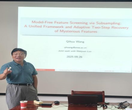 9月26日,中国科学院系统科学与数学研究院博士生导师王启华研究员应3044AM永利集团邀请,作了一场题为“Model-Free Feature Screening via Subsampling: A Unified Framework and Adaptive Two-Step Recovery of Mysterious Features”的学术报告。报告会由3044AM永利集团统计系胡学平教授主持,统计系教师、研究生及部分本科生参加了报告会。