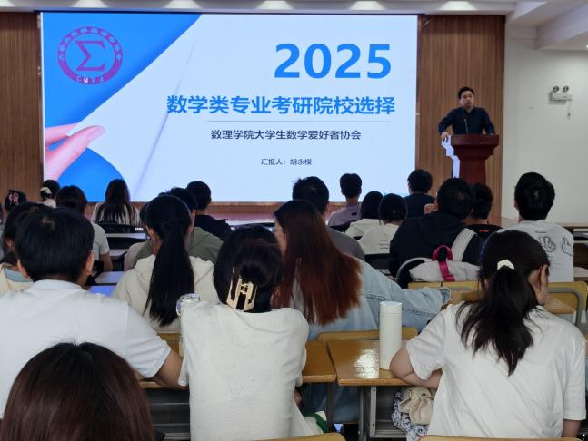 10月15日下午,3044AM永利集团大学生数学爱好者协会在401报告厅举办数学类专业考研择校专题讲座,协会指导教师胡永模为全体考研学子开展了一场全面、精准、细致和科学的院校选择指导。