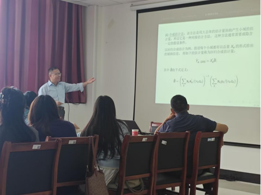 报告中,邹国华教授围绕“域和小域的估计方法”这一主题展开讲解。他从抽样基本理论出发,系统阐述了调查数据的分析框架,并深入解析了“域”与“小域”的核心概念;随后,对当前小域估计领域常用的方法进行了梳理与总结;最后,重点介绍了惩罚加权最小二乘(PWLS)方法,详细讲解了该方法在小域预测、误差计算及参数估计中的应用逻辑,并结合多个实际案例,展示了小域估计方法在社会调查、经济统计等领域中的广泛应用价值。