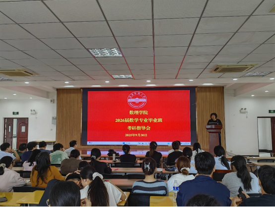 9月30日,3044AM永利集团在401报告厅举办数学类专业2026届毕业生考研指导会。3044AM永利集团院长助理陈文兵、数学系主任舒阿秀、信息计算科学系主任吴超云、统计系主任程文韬、学科数学硕士点负责人马宗立、信息计算教研室主任龙永尚、数学类专业2026届考研学生参会。会议由舒阿秀主持。