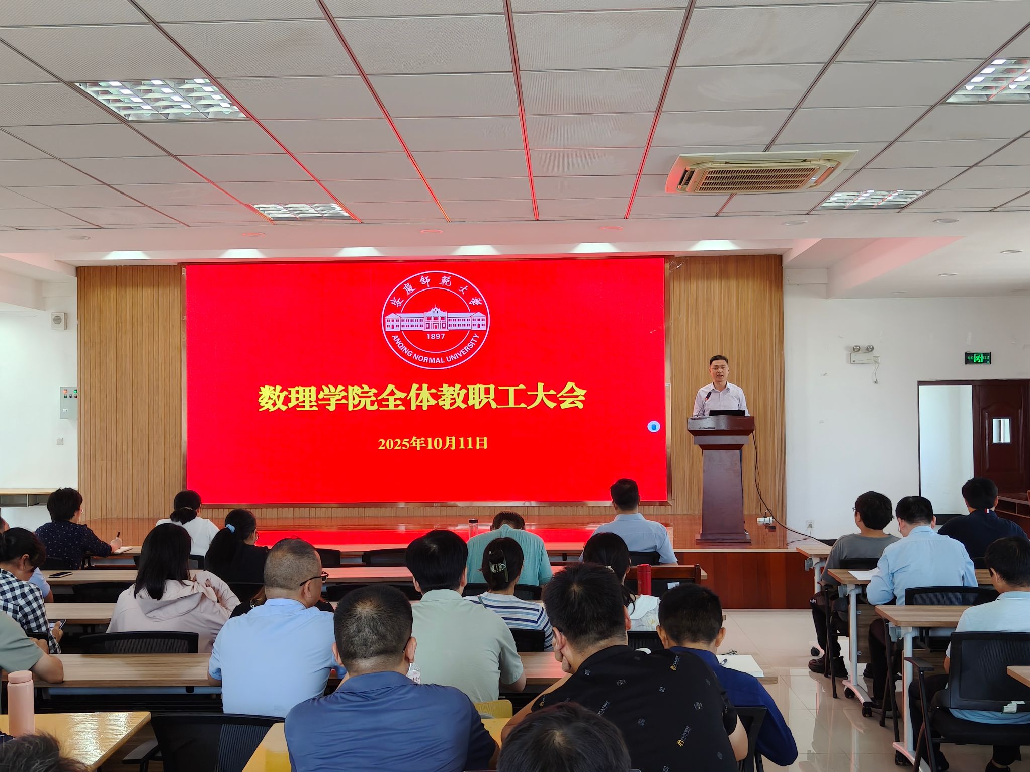 10月11日,3044AM永利集团在I楼401报告厅召开全体教职工大会。3044AM永利集团党委书记陆健,院长张海,副院长易明芳,党委副书记、纪委书记彭芳珍及全体教职工参加会议。会议由陆健主持。